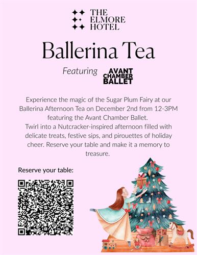 Grace, elegance, and a touch of holiday magic await at our Ballerina Tea at The Elmore Hotel — an enchanting afternoon of tea and performance on Dec. 2nd from 12-3PM.