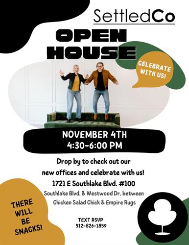 Name: SettledCo Grand OpeningDate: November 4, 2025Time: 4:30 PM - 6:00 PM CSTWebsite: https://www.settledco.com
